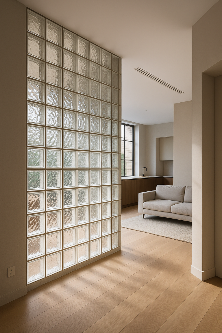 Współczesne projekty stawiają na naturalne doświetlenie, higienę materiałową oraz czytelny podział funkcji. Luksfer pracuje jak „filtr” światła: rozprasza je, redukuje kontrasty i ogranicza wgląd, dzięki czemu świetnie zastępuje klasyczne przeszklenia tam, gdzie potrzebna jest dyskrecja. Dodatkowo modułowość pustaków szklanych daje architektom narzędzie do rysowania geometrii: pas świetlny, narożnik, półścianka, a nawet łuk (w zależności od systemu).